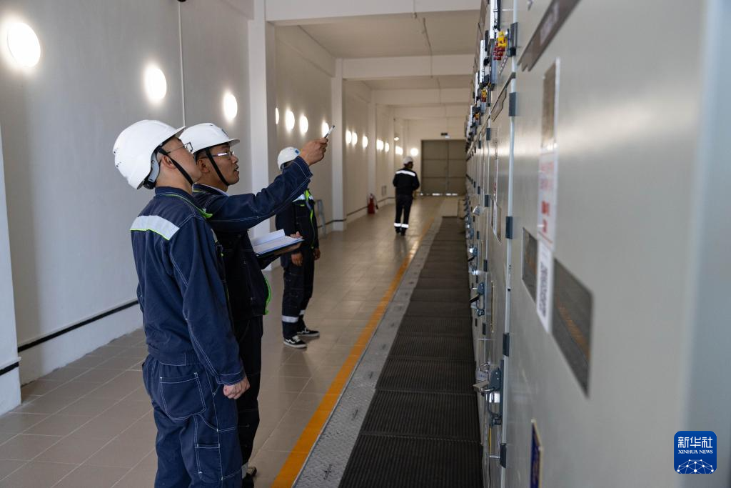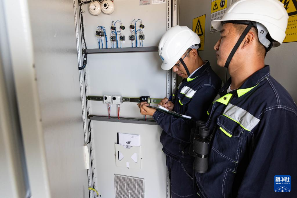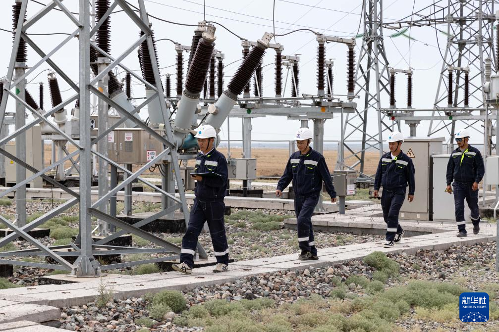 6月25日,在哈萨克斯坦阿拉木图州谢列克风电场,中哈运行人员进行设备巡检。
