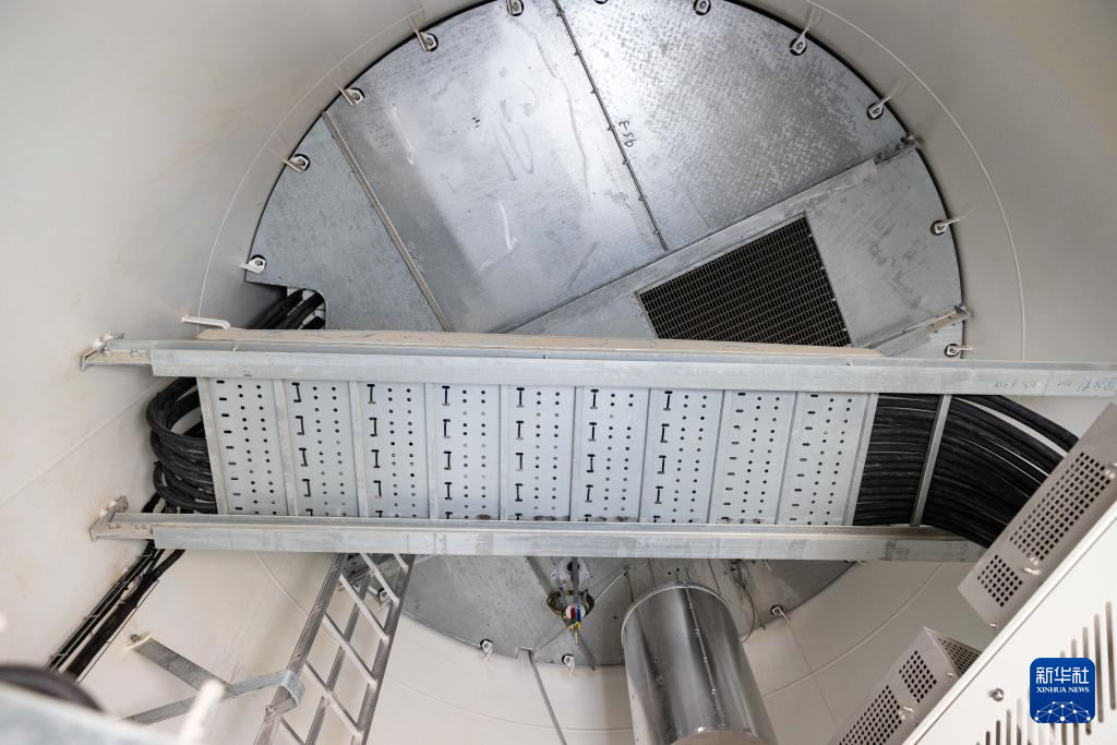 这是6月25日在哈萨克斯坦阿拉木图州谢列克风电场拍摄的风机第一级平台。