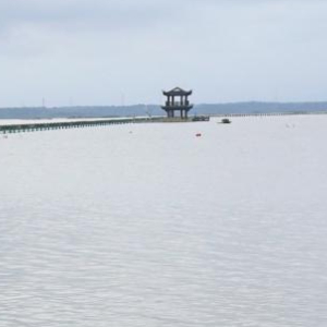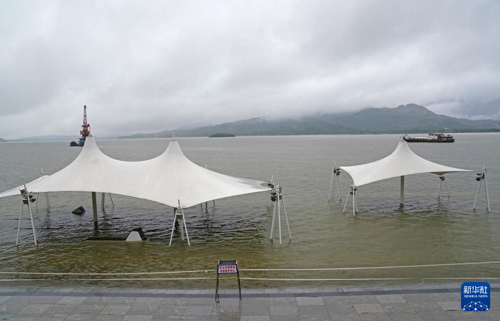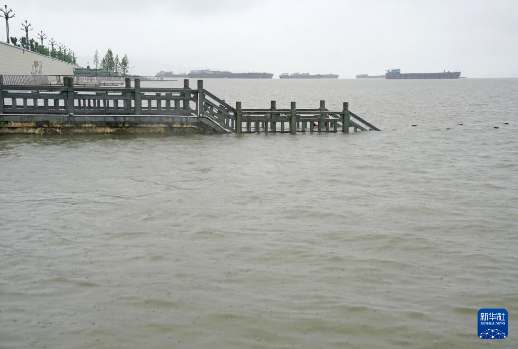 在江西省庐山市,亲水步道已被上涨的湖水淹没(6月27日摄)。