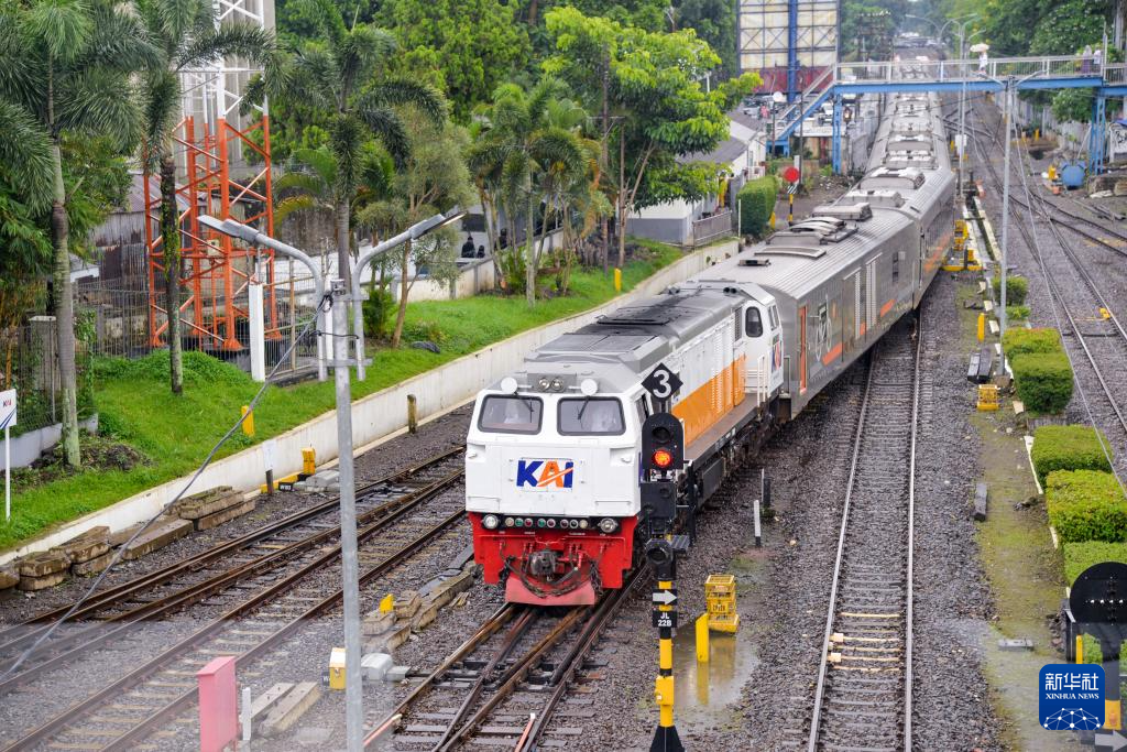 在印度尼西亚万隆,一列火车驶入万隆火车站(3月6日摄)。