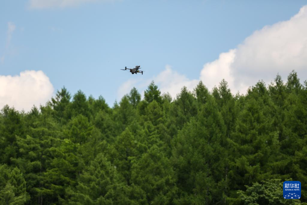 这是6月27日在伊春森工带岭林业局有限责任公司明月林场拍摄的森林智能巡护无人机。