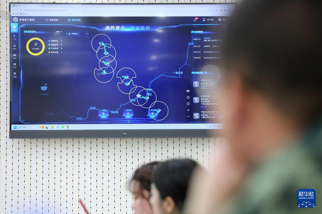 6月27日,在伊春森工带岭林业局有限责任公司森林扑灭火大队指挥室,调度员远程监看无人机森林智能巡护。