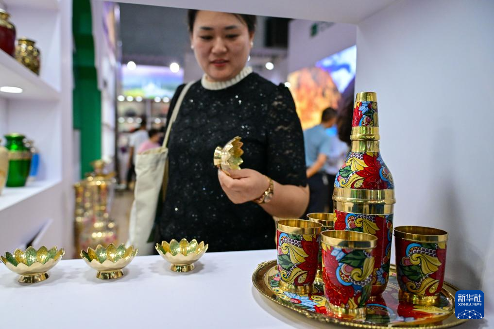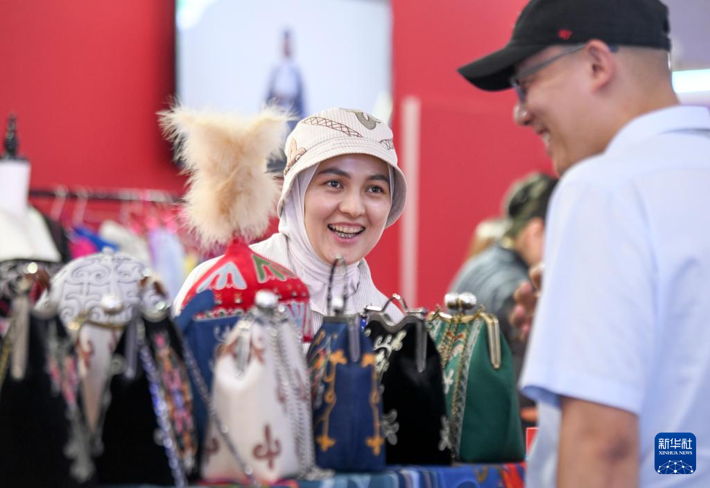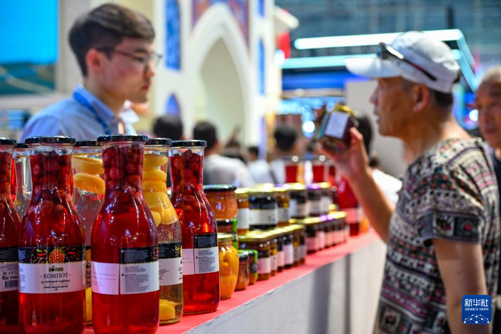 6月27日,在第八届中国—亚欧博览会上,参观者在吉尔吉斯斯坦展台选购特色产品。