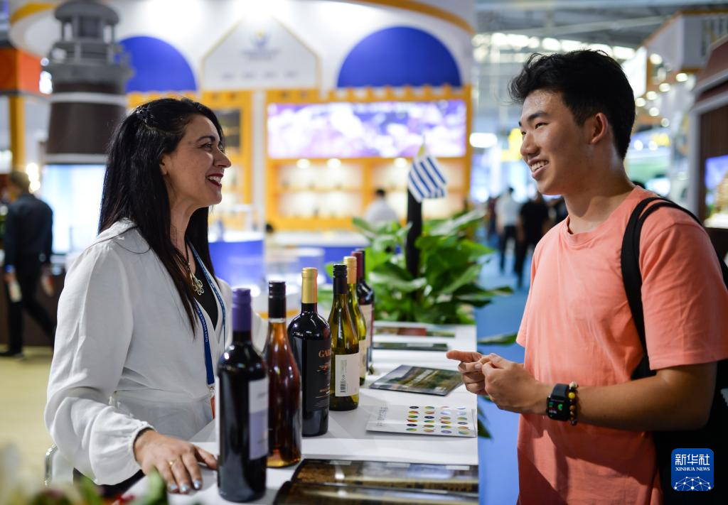 6月27日,在第八届中国—亚欧博览会上,观众在乌拉圭展台洽谈。