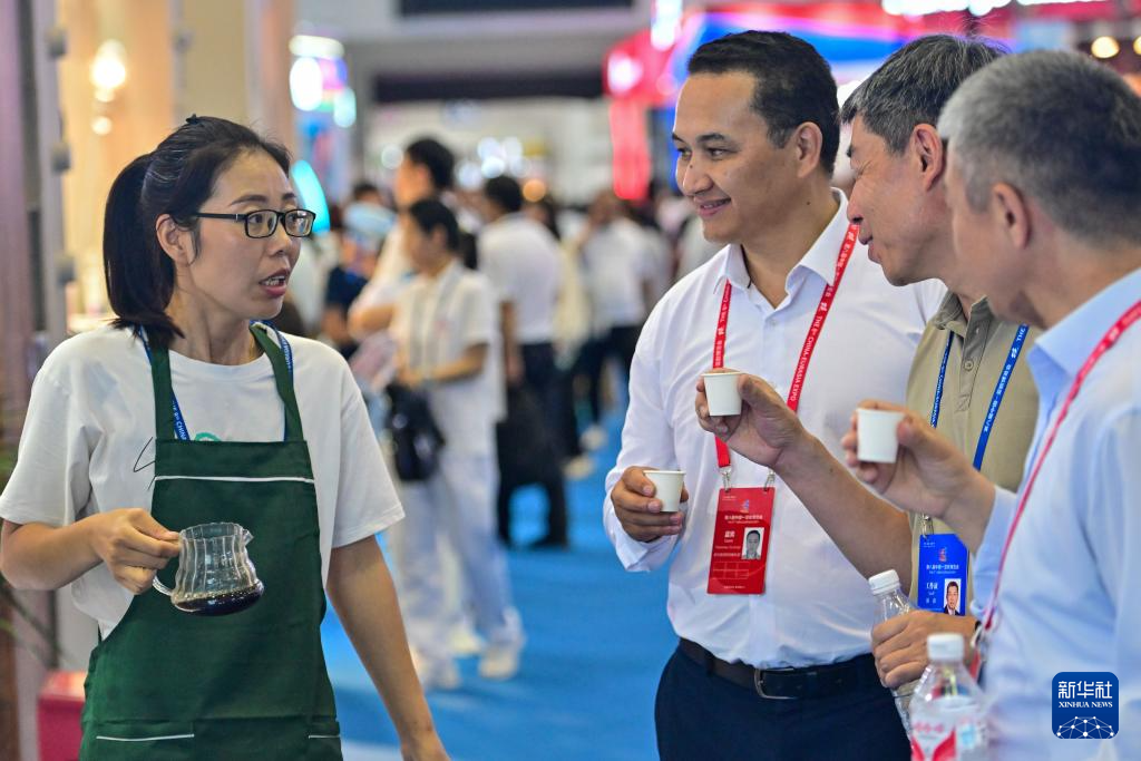 6月26日,在第八届中国-亚欧博览会上,参观者在越南展台品尝咖啡。