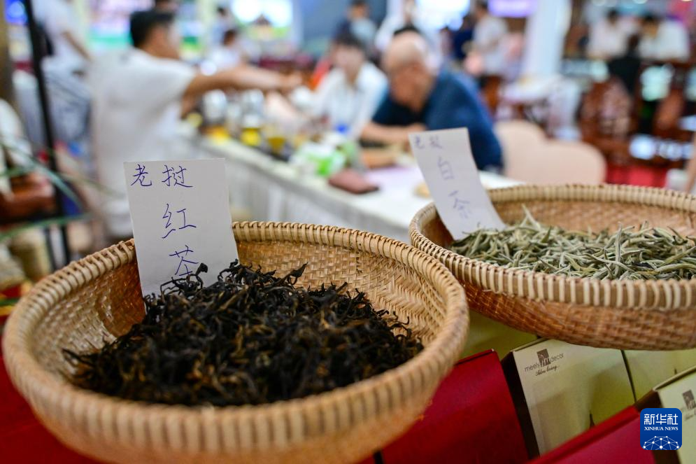 6月27日,在第八届中国-亚欧博览会上,参观者在老挝展台品茶。
