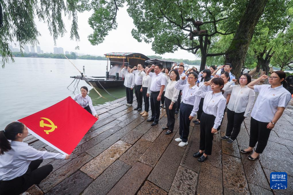 “七一”临近,来自全国各地的党员们来到浙江嘉兴南湖,在红船旁和南湖革命纪念馆开展重温入党誓词、上党课、参观学习等系列主题活动。