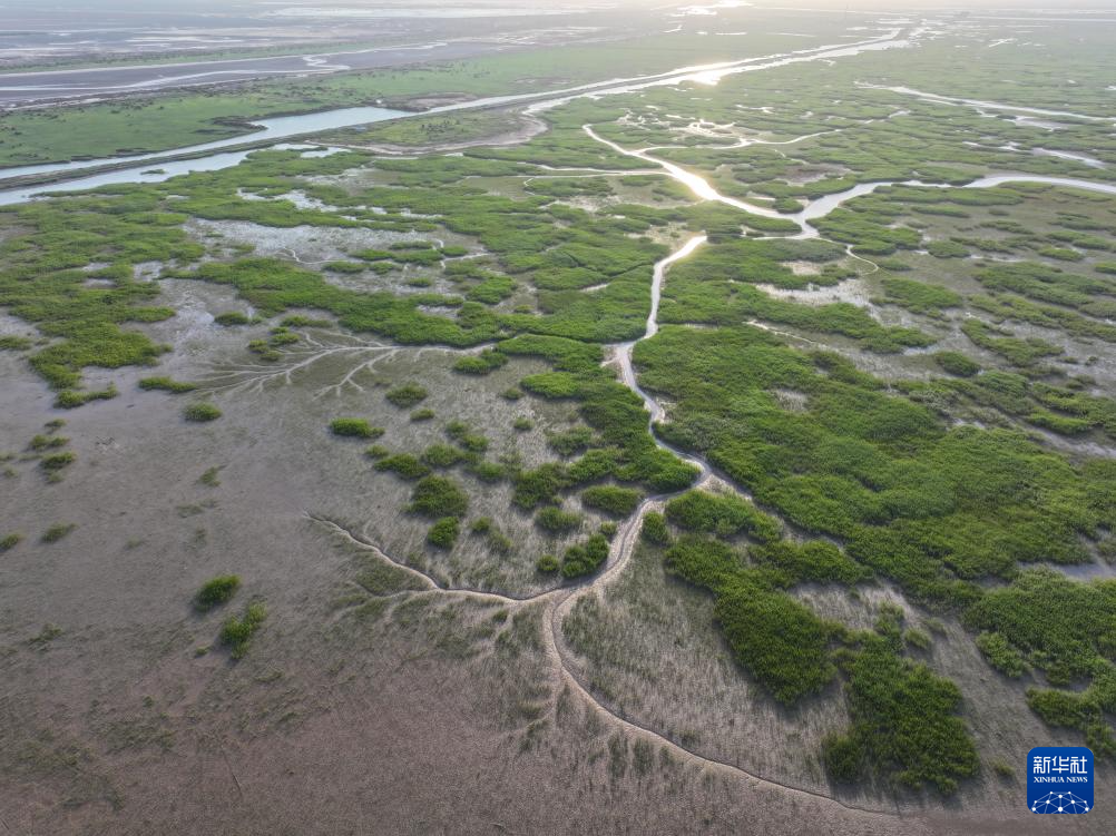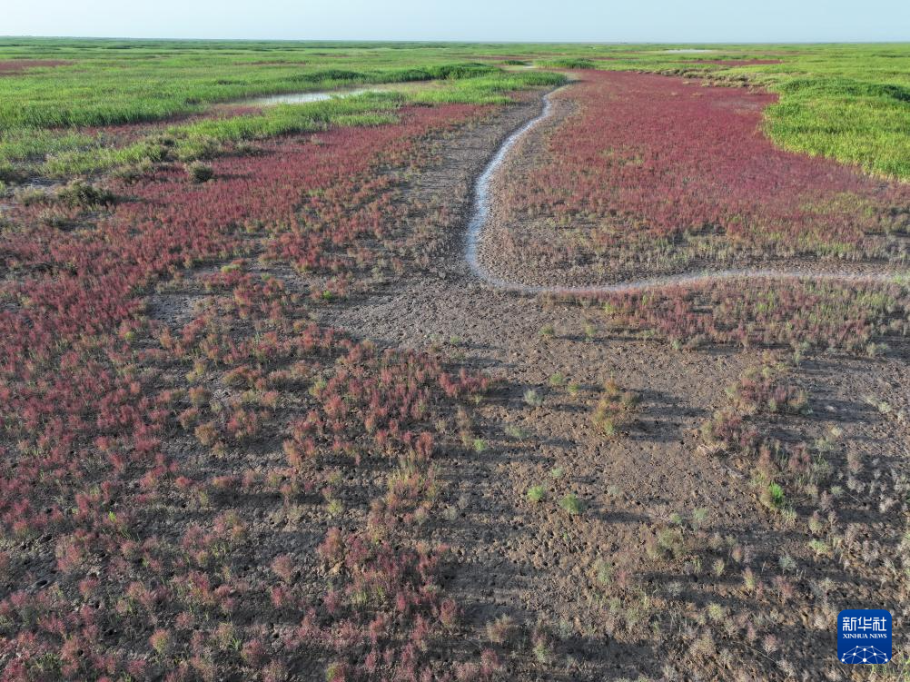 这是6月25日在山东东营拍摄的黄河三角洲国家级自然保护区湿地(无人机照片)。