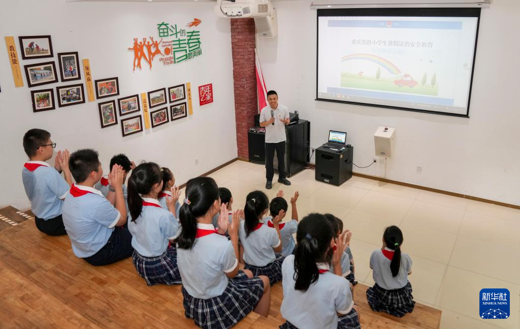 近日,重庆各地中小学陆续迎来暑假。为确保孩子们度过一个安全、健康的假期,重庆市九龙坡区重庆铁路小学联合当地的司法局、学校周边社区启动了“安全教育到身边”活动。由学校和司法局联合派出志愿者,深入社区持续开展暑期安全教育宣传活动。