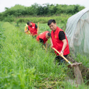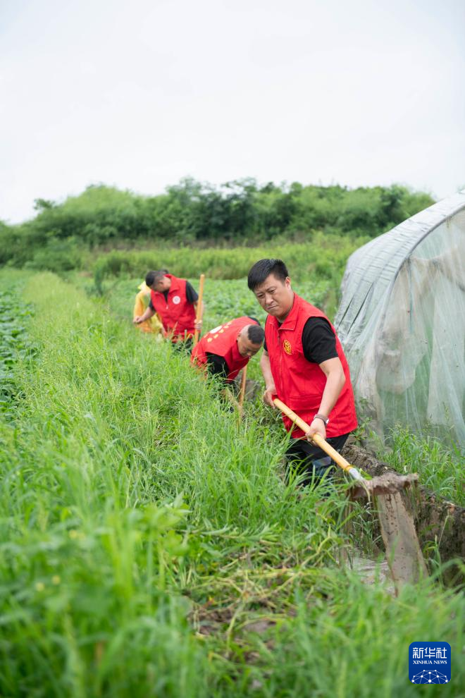 6月28日,在黄山市屯溪区奕棋镇徐村,“春晓”志愿服务队队员在清沟沥水。
