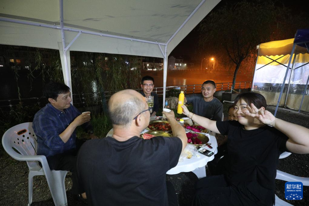 6月28日,市民在黄山市屯溪区兖溪夜市吃饭。兖溪夜市于6月20日因暴雨停业,6月28日恢复营业。