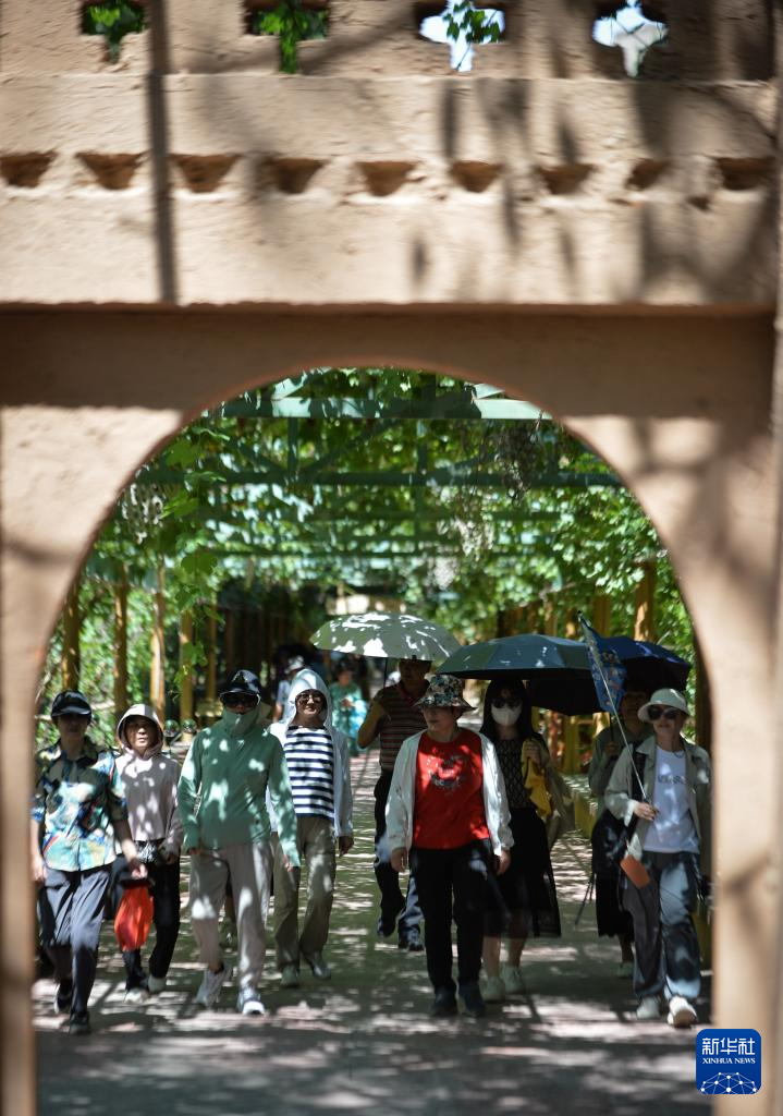 连日来,新疆吐鲁番多日气温超过40摄氏度,但盛夏旅游热度不减。交河故城、葡萄沟、坎儿井和火焰山等景区吸引各地游客前来感受“火洲”的夏日风光。