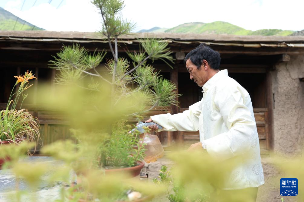 桑洁在次日那毛泽东旧居给花木浇水(6月28日摄)。
