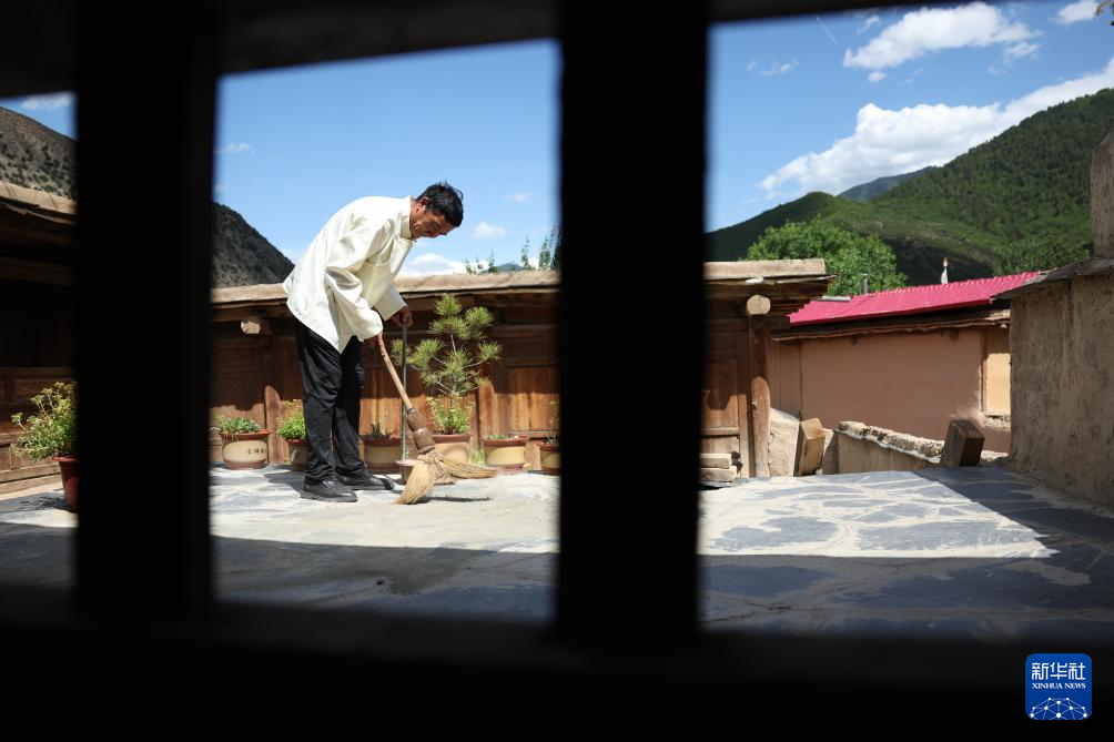 桑洁在次日那毛泽东旧居内打扫卫生(6月28日摄)。