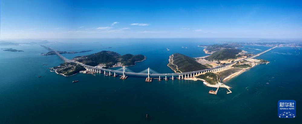 这是2023年12月15日拍摄的晨曦中的港珠澳大桥(无人机照片)。2018年港珠澳大桥正式开通运营,该桥东接香港西接珠海澳门,全长55公里。
