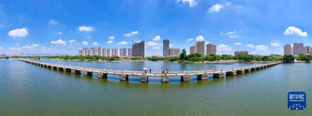 这是2023年11月19日拍摄的泉州洛阳桥(无人机照片)。洛阳桥位于福建泉州市区东北部的洛阳江上,原名“万安桥”,始建于北宋皇祐五年至嘉祐四年(1053-1059年),为我国现存最早的跨海梁式大石桥,代表当时中国先进的造桥技术。