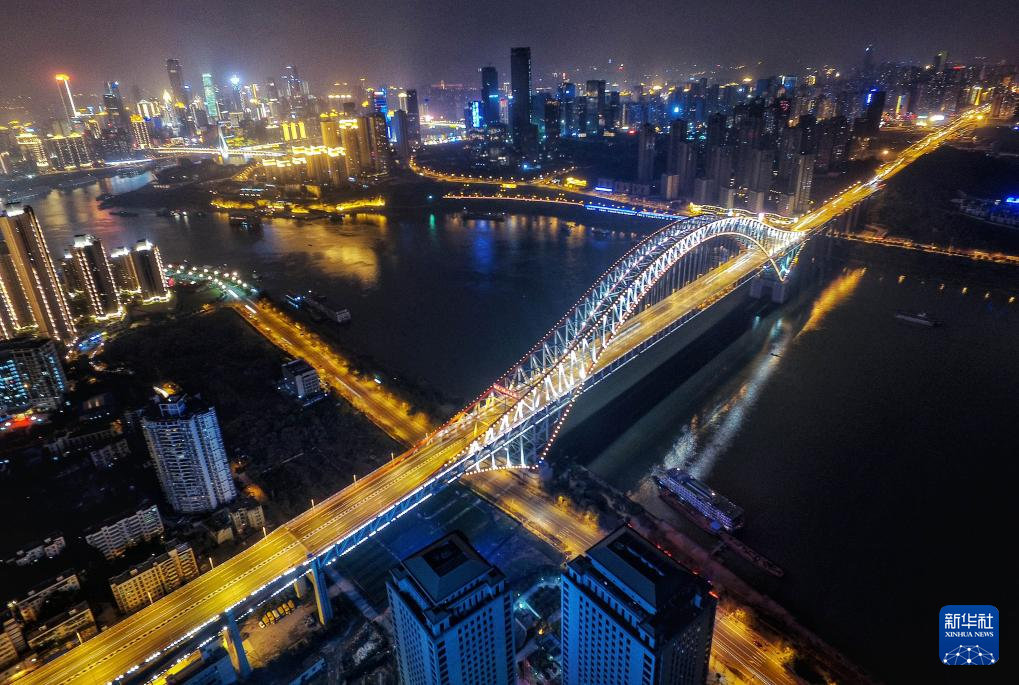 这是2016年2月1日拍摄的重庆朝天门长江大桥夜色。重庆朝天门长江大桥于2009年4月通车,主跨长552米。