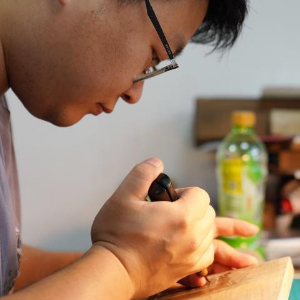 6月27日,在金陵刻经处技艺展示区,非遗传承人王康在刻版。