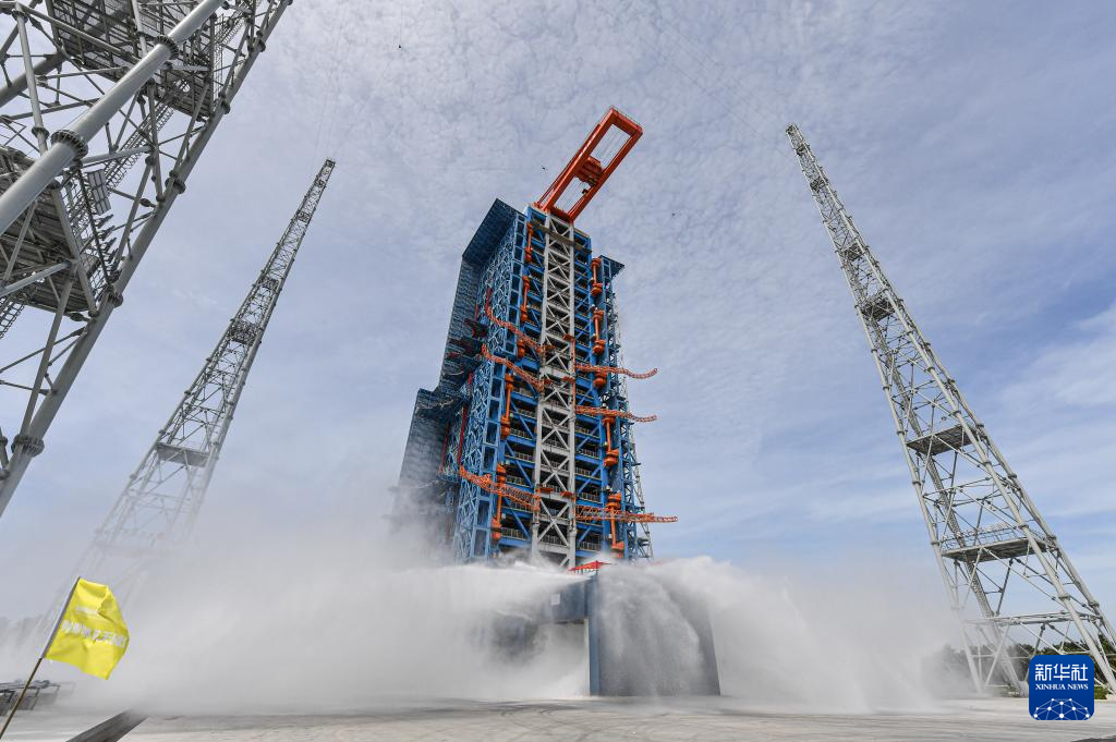 6月30日在海南商业航天发射场一号发射工位拍摄的喷水试验。
