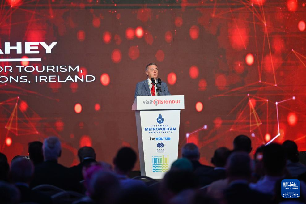 6月28日,在土耳其伊斯坦布尔,爱尔兰前旅游国务部长弗兰克·法希在活动现场发表演讲。