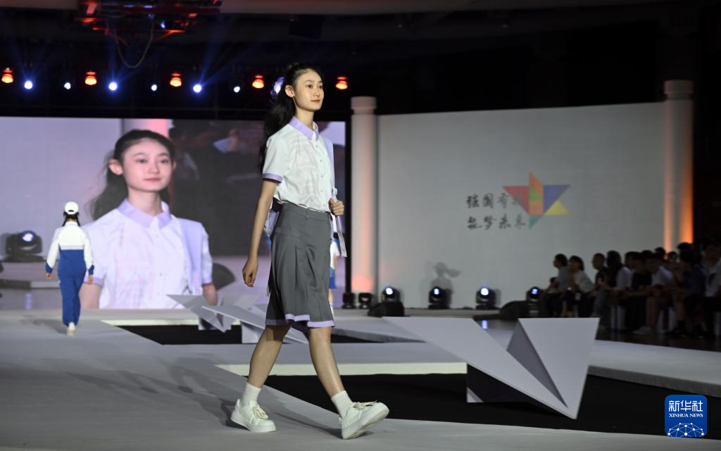 6月29日,学生模特进行校服展示。