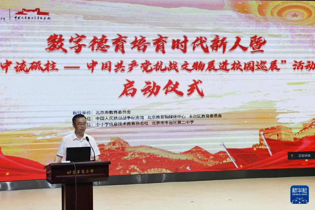 当日,数字德育培育时代新人暨“中流砥柱——中国共产党抗战文物展进校园巡展”活动在北京市丰台区第二中学和北京市赵登禹中学同时启动。本次活动由中国人民抗日战争纪念馆、北京教育融媒体中心、丰台区教育委员会联合主办,巡展用展板的形式展出百余幅珍贵历史图片,并与德育教育相结合,将陆续走进北京市20所中学。