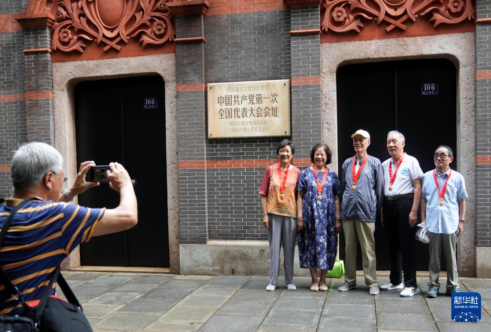 7月1日,几名老党员相约来到一大会址前,佩戴着“光荣在党50年”纪念章,合影留念。