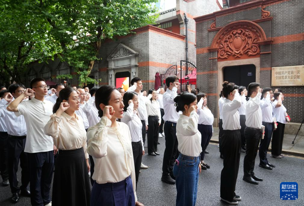 7月1日清晨,上海市新党员代表在中共一大会址前进行入党宣誓。