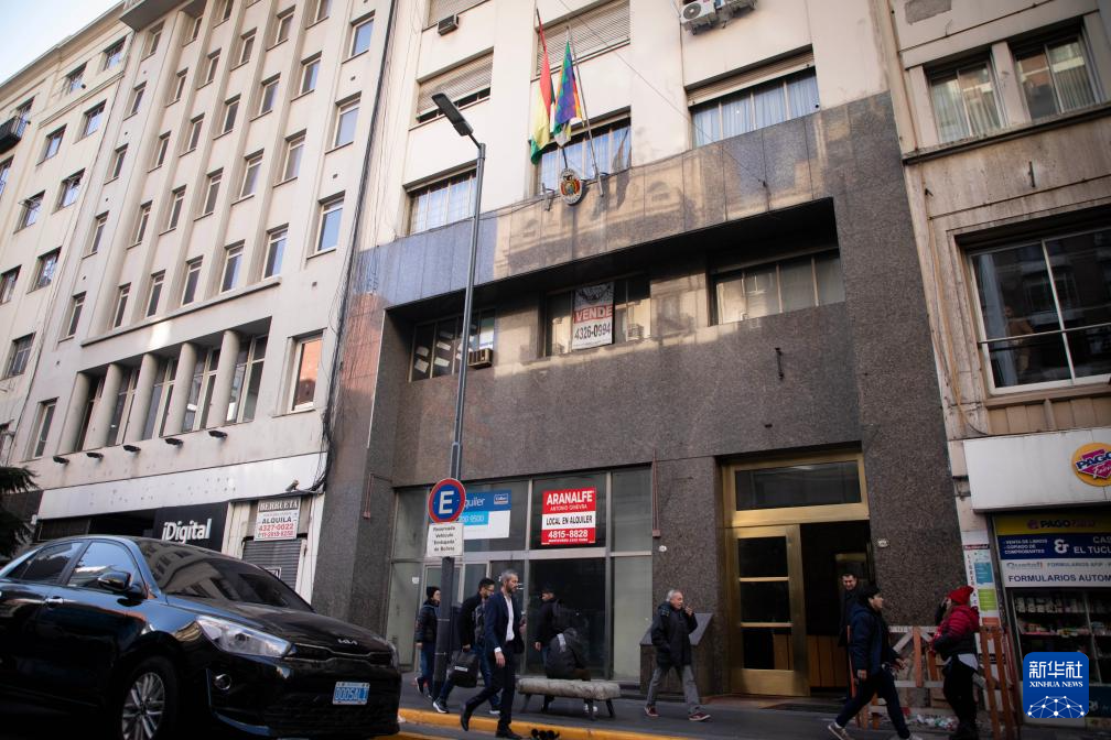 这是7月1日拍摄的位于阿根廷首都布宜诺斯艾利斯的玻利维亚驻阿根廷大使馆。