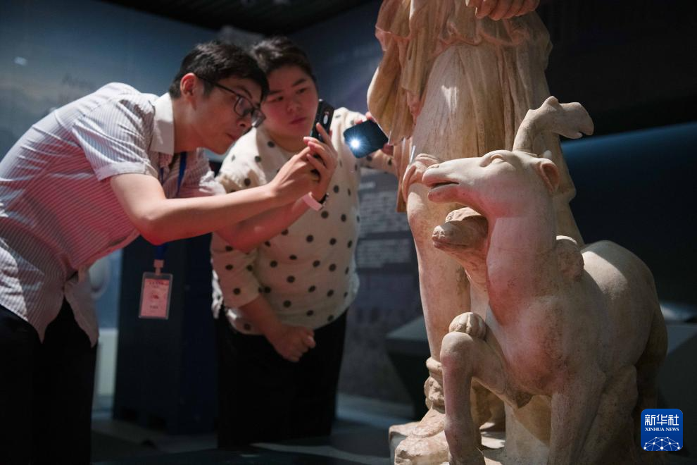 7月2日,安徽博物院工作人员在拍摄开箱后的古希腊文物。