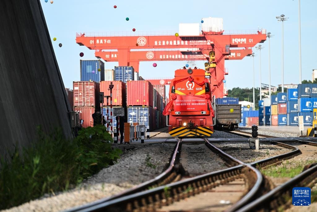 6月26日,“韩国-连云港-中亚”国际多式联运班列从中哈连云港物流合作基地出发,驶往哈萨克斯坦、乌兹别克斯坦。班列运载的55个大柜此前于6月13日从韩国境内发出,经釜山港海运抵达连云港后转由铁路运输。