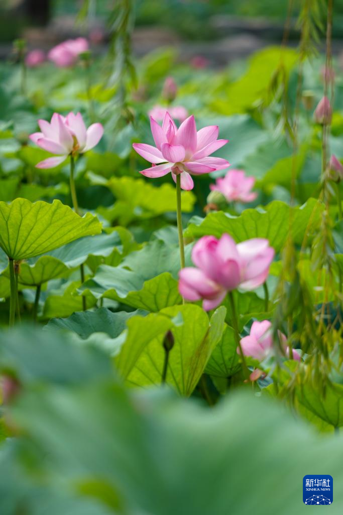 盛夏时节,北京市陶然亭公园的荷花竞相绽放,吸引众多市民赏花。
