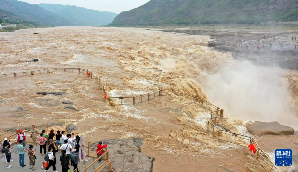 近日,随着黄河正式进入主汛期,受上游降雨增多和水库调节放水影响,黄河壶口瀑布水量大增,吸引众多游客。