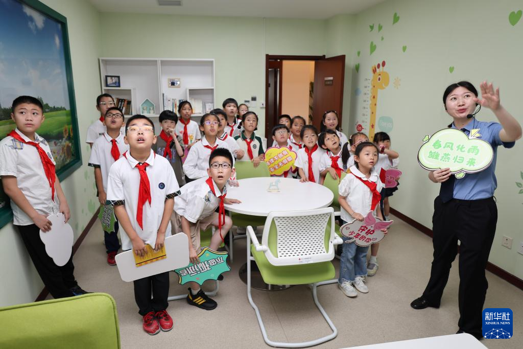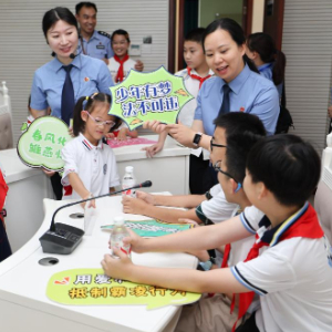 当日,浙江省湖州市爱山小学教育集团、月河小学教育集团等学校的一批小学生受邀来到湖州市吴兴区人民检察院,参加一场暑期安全普法小课堂。检察官提醒学生们暑期的安全注意事项,并带领参观未成年人检察办案区、公益诉讼快速检验实验室等,以增强学生们的自我保护意识。