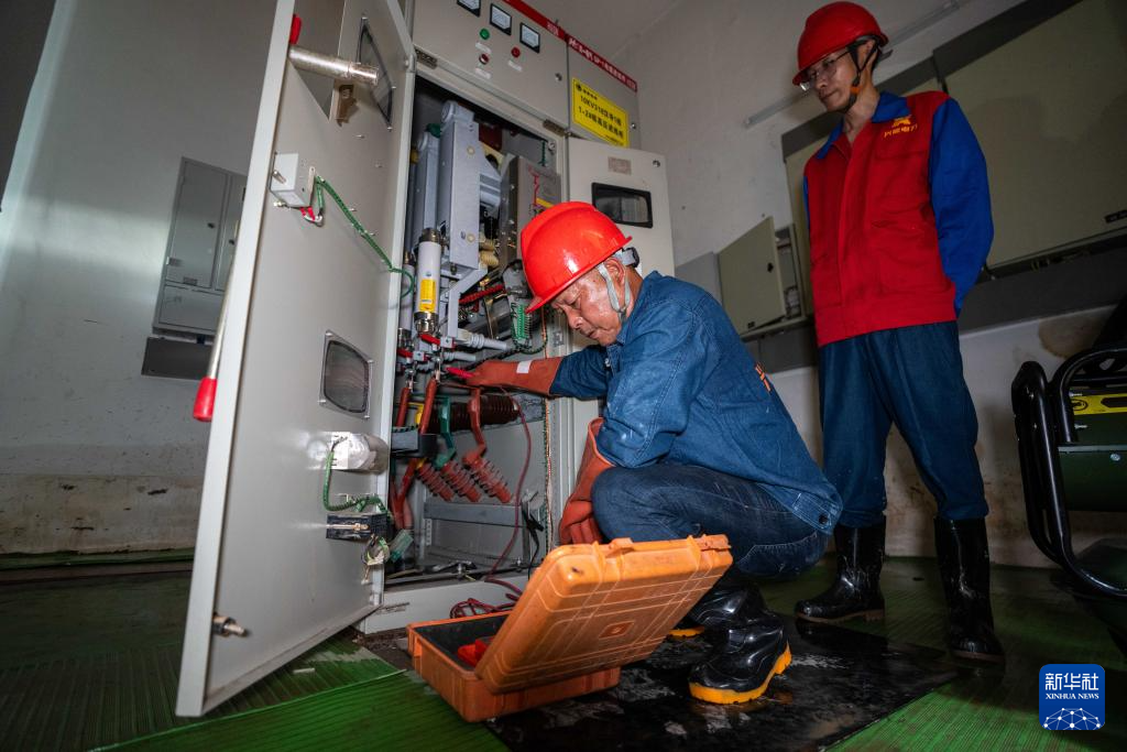 7月3日,在平江县天力城小区配电房,国网长沙供电公司电力工人在进行绝缘实验。
