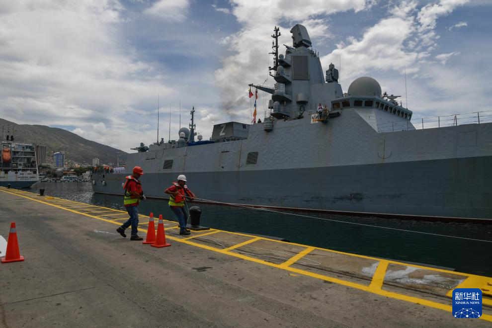 这是7月2日在委内瑞拉北部拉瓜伊拉港拍摄的俄北方舰队“戈尔什科夫海军元帅”号护卫舰。