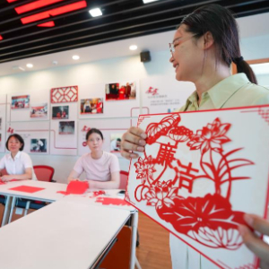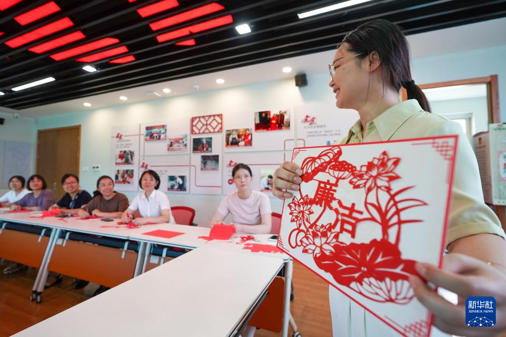 7月4日,在苏州市吴江区平望镇梅堰社区党群服务中心,居民参与“清廉”主题剪纸活动。