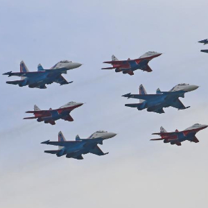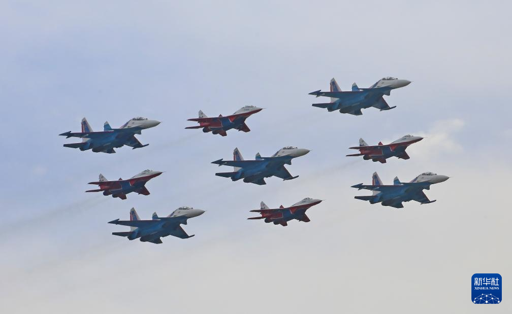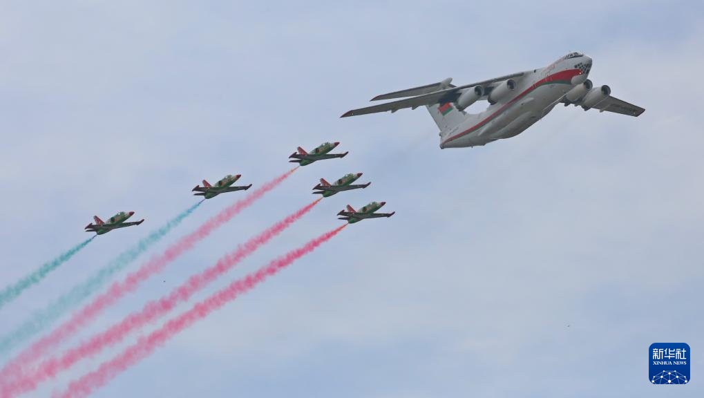 7月3日,军机在白俄罗斯明斯克参加阅兵活动。