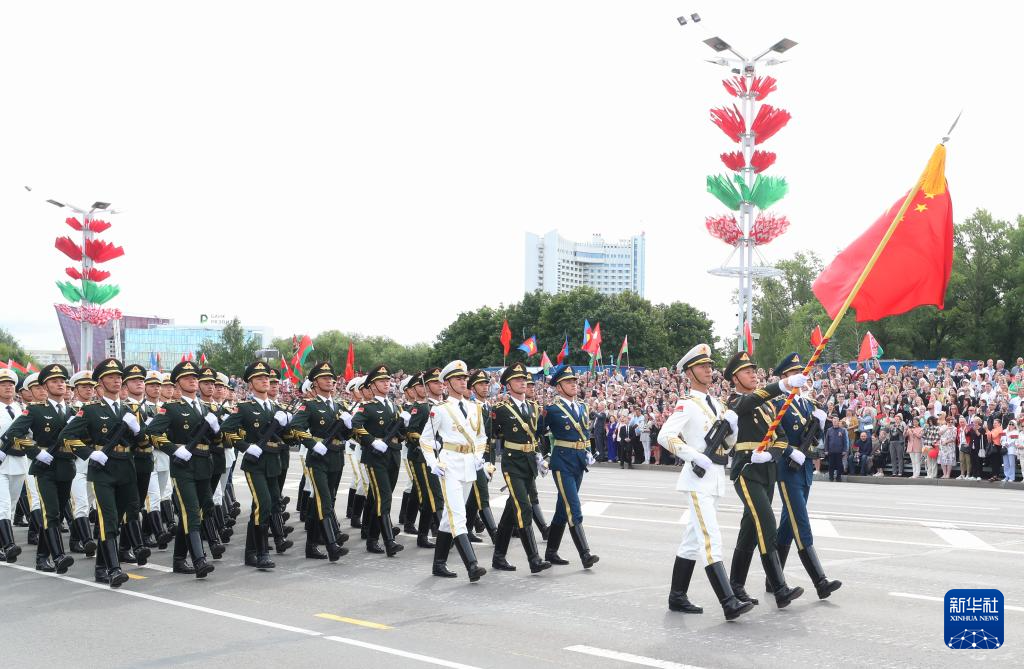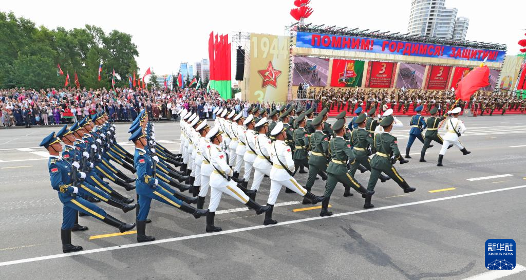 白俄罗斯3日上午在首都明斯克举行解放80周年庆祝阅兵活动。应白俄罗斯国防部邀请,中国人民解放军仪仗司礼大队抽组仪仗分队参加阅兵活动。