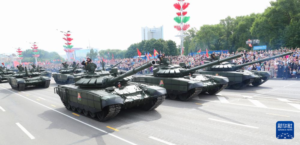 7月3日,军事装备在白俄罗斯明斯克参加阅兵活动。