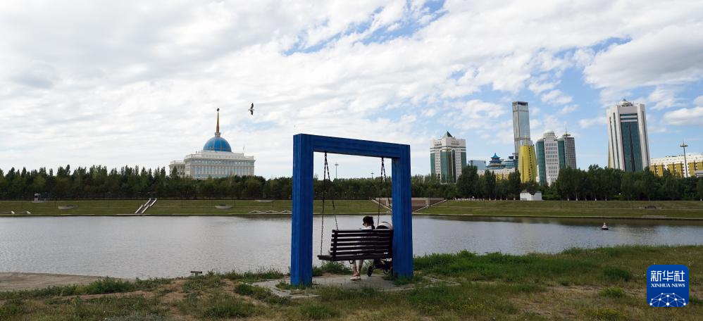 6月29日,人们在哈萨克斯坦首都阿斯塔纳伊希姆河畔休息。