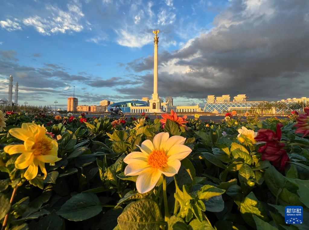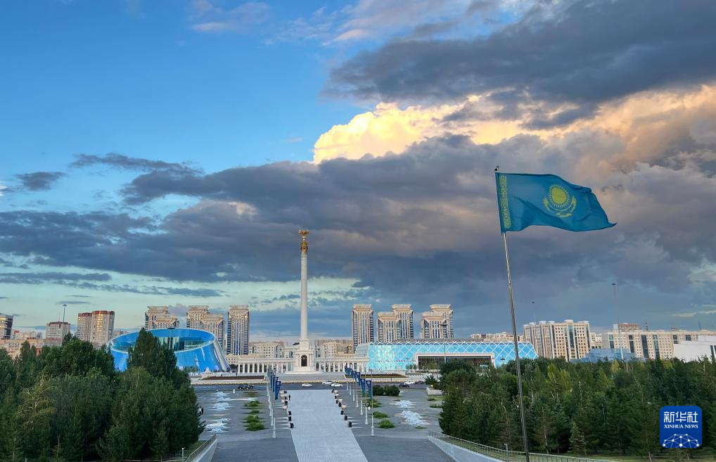 这是7月2日拍摄的哈萨克斯坦首都阿斯塔纳独立广场。