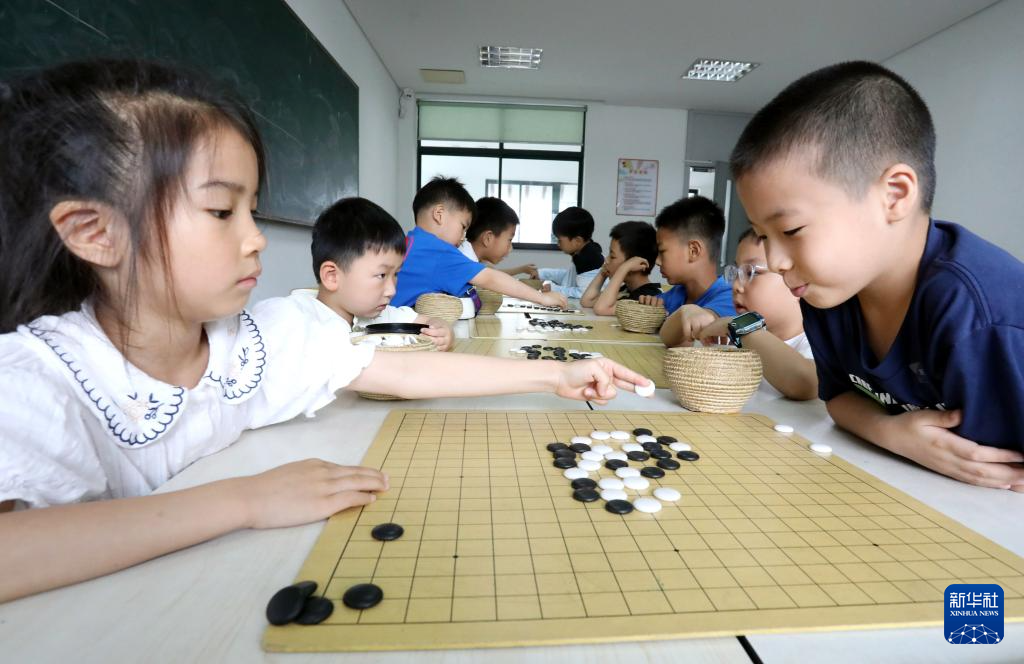 7月2日,孩子在江苏省苏州市姑苏区青少年宫体验围棋。