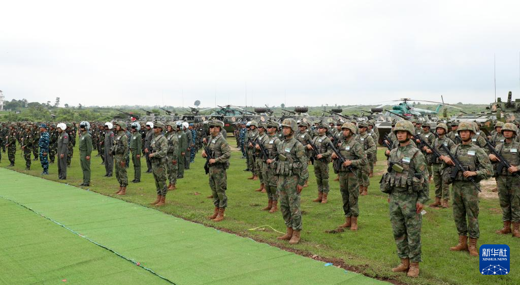 中老“友谊盾牌-2024”联合演习开始仪式5日在老挝人民军库玛丹学院训练场举行。