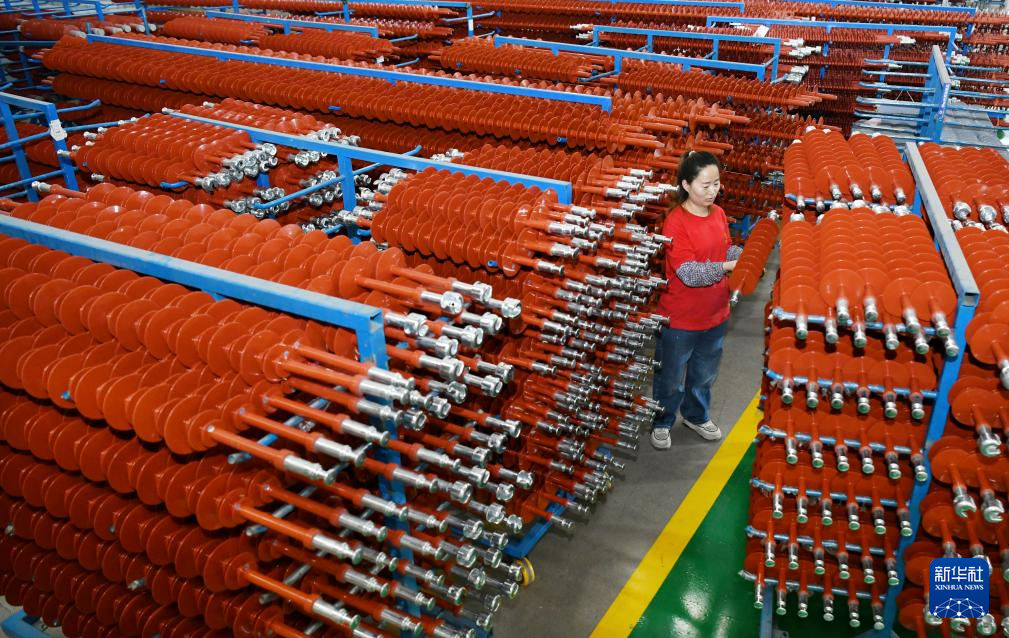 7月6日,河北省河间市一家电力装备制造科技型企业的工人在车间内整理产品。