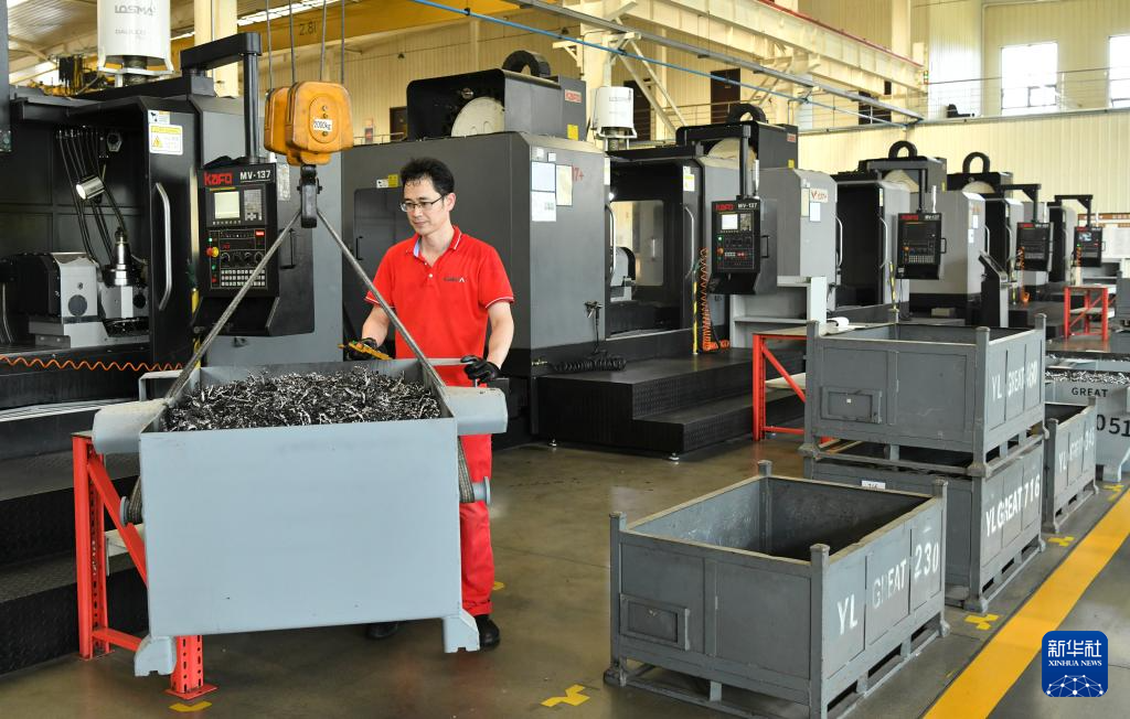 7月5日,河北省河间市一家钻头制造科技型企业的工人在生产车间内工作。