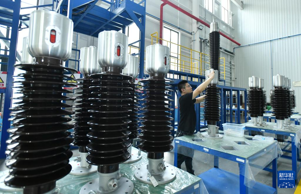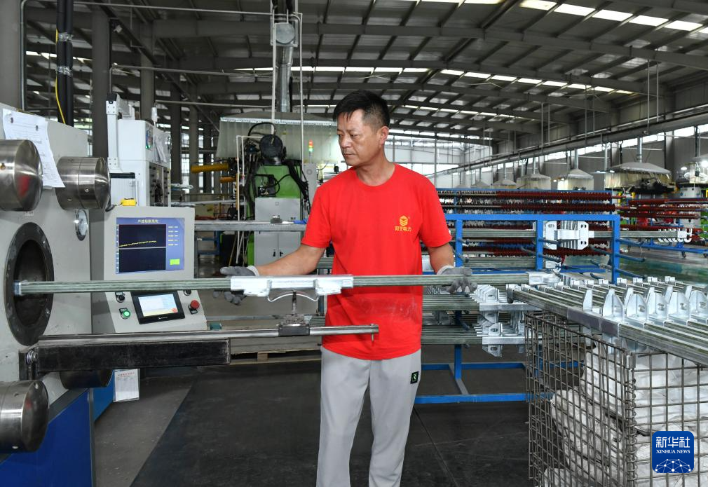 7月6日,河北省河间市一家电力装备制造科技型企业的工人在生产线上作业。