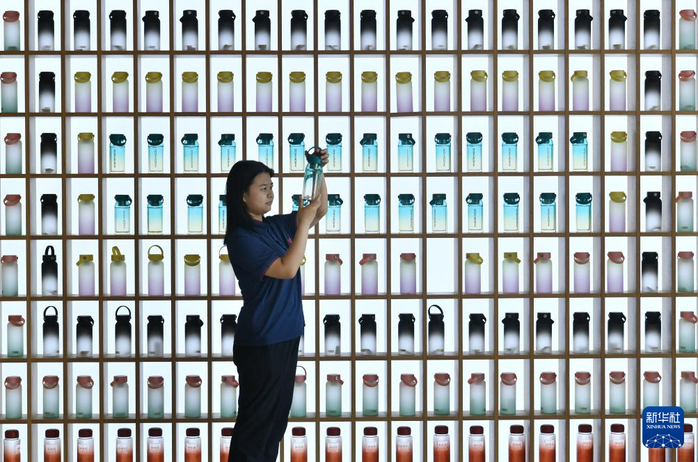 7月5日,河北省河间市一家工艺玻璃生产科技型企业的工作人员在展厅内整理产品。