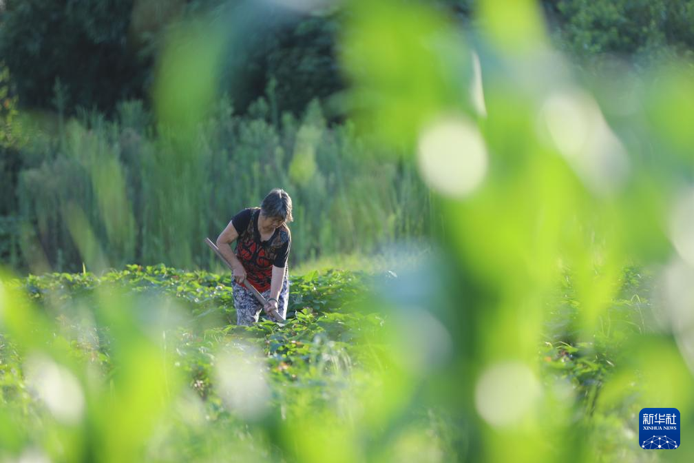 7月6日,在湖南省永州市道县万家庄街道五洲社区,村民在地里劳作。