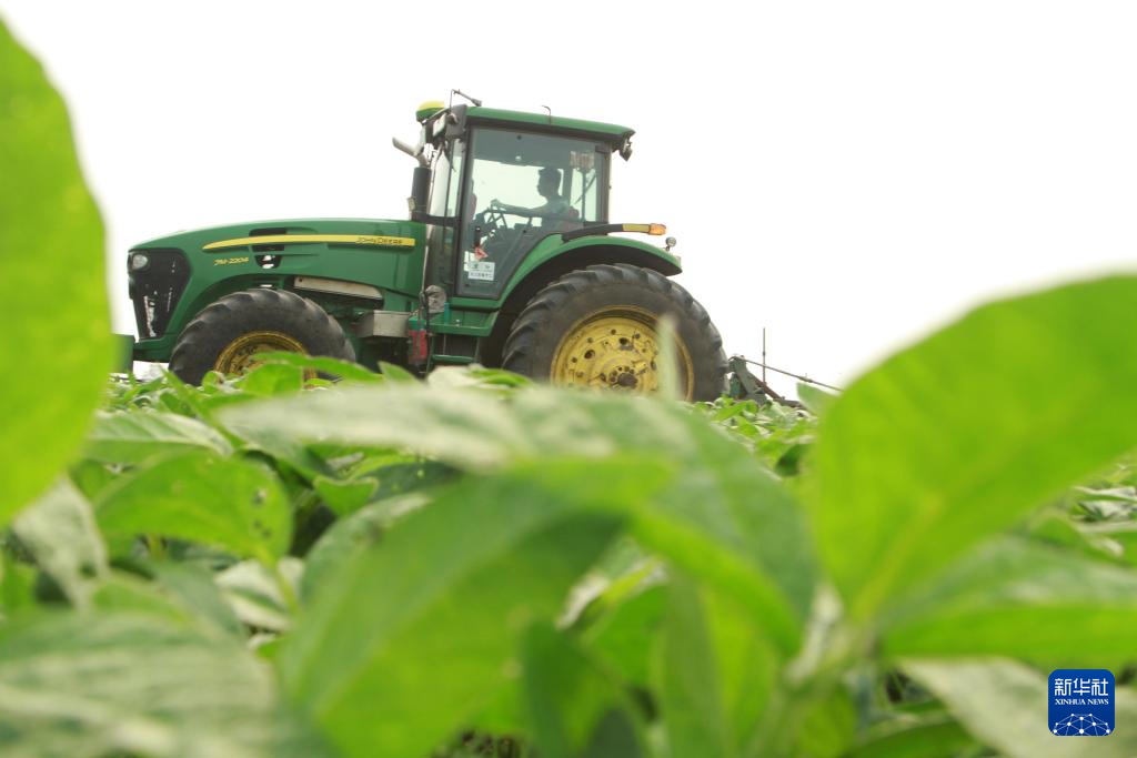 7月6日,在黑龙江垦区的北大荒集团五大连池农场有限公司,大型农机在大豆地块进行夏管作业。